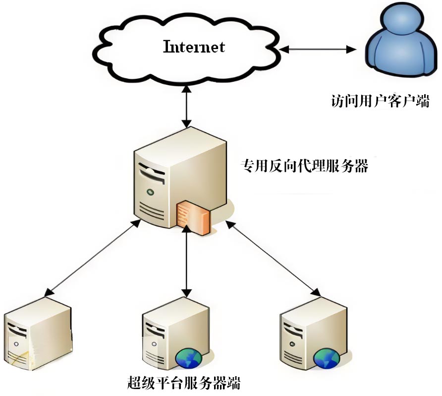 超級(jí)平臺(tái)運(yùn)行時(shí)通過一條TCP連接到專用反向代理服務(wù)器,進(jìn)行身份驗(yàn)證、有外網(wǎng)連接時(shí)呼叫超級(jí)平臺(tái)。